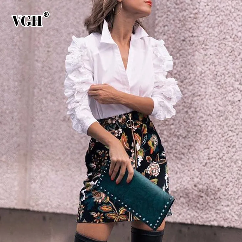 price cut VGH Spring Women Blouse Shirt Top Female Butterfly Sleeve Lapel Slim White Female Plus Size Shirt 2