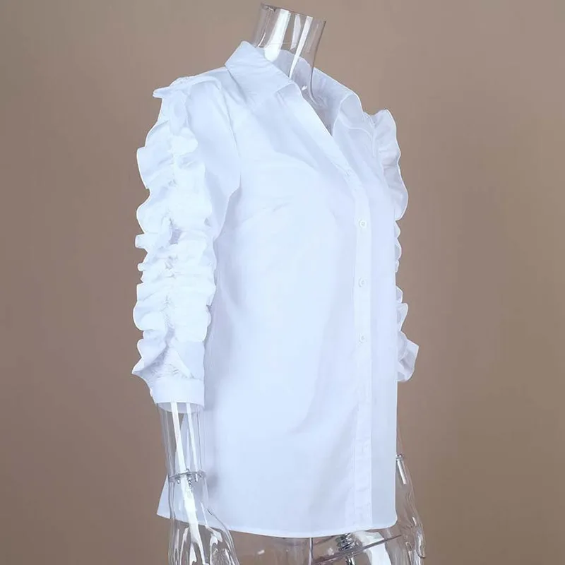 awesome VGH Spring Women Blouse Shirt Top Female Butterfly Sleeve Lapel Slim White Female Plus Size Shirt 2
