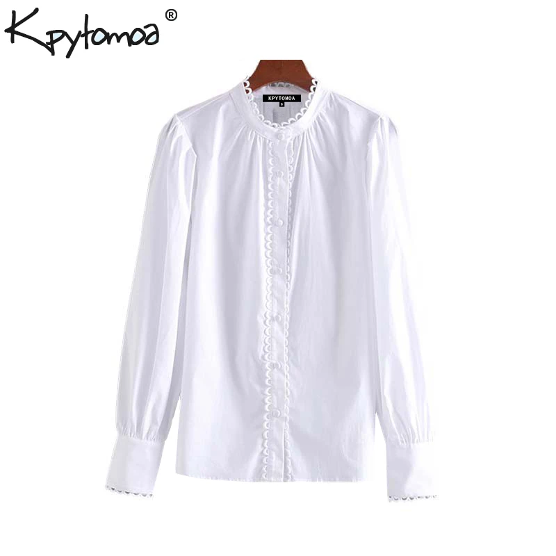 Most effective Vintage Sweet Scallop Trim Patchwork Blouses Women 2019 Fashion O Neck Long Sleeve Office Wear Shir