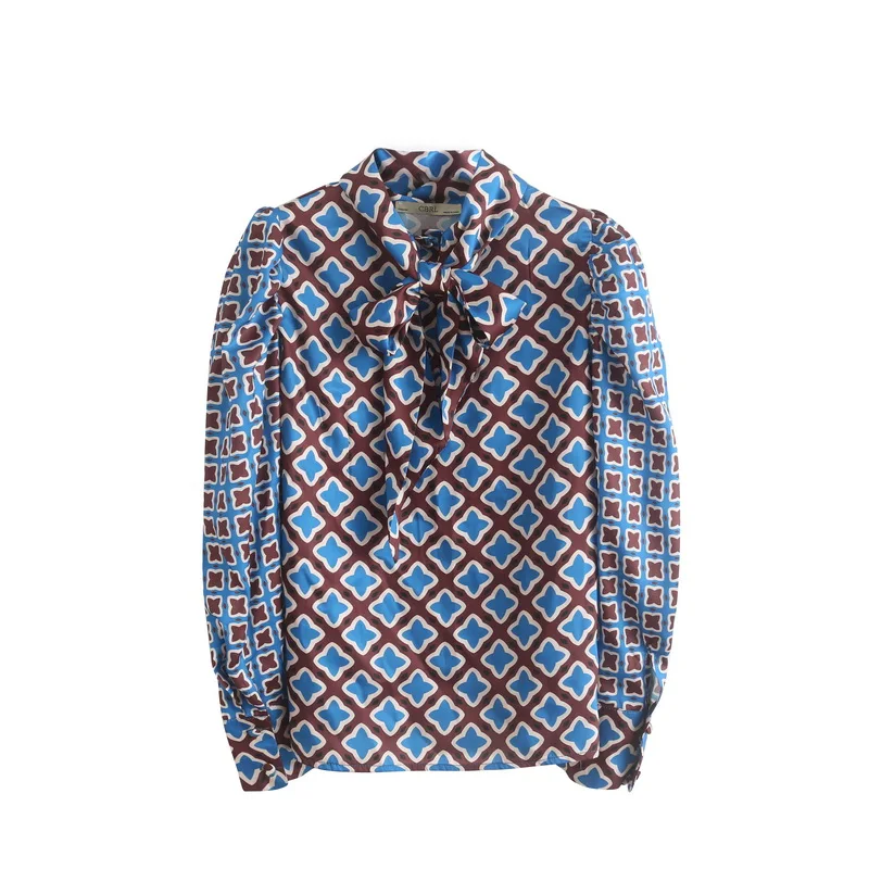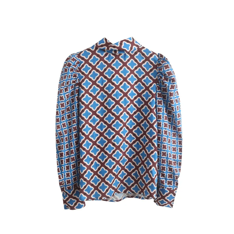 lower price Women Long Sleeve Shirt Autumn 2019 New Fashion Geometric Prints Pattern Modern Lady Puff Sleeve To