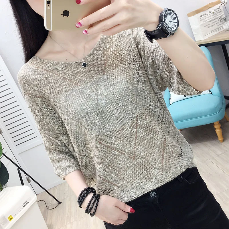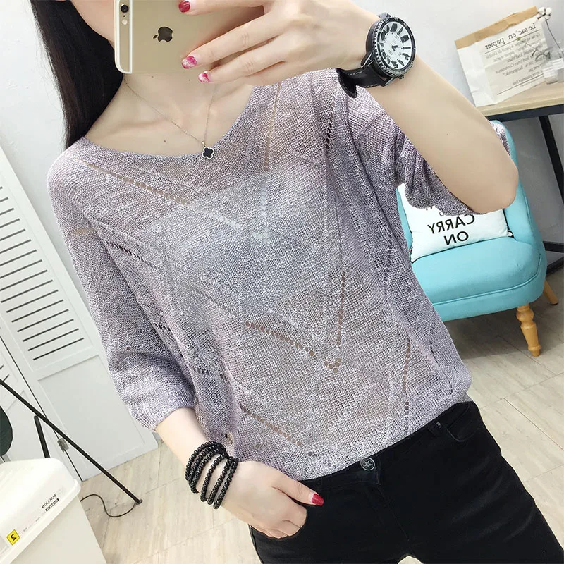 remarkable 2020 knitted sweater hollow jacket women's thin style new summer bat sleeve blouse Korean version o
