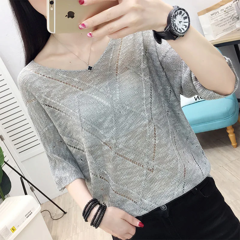 Greatest 2020 knitted sweater hollow jacket women's thin style new summer bat sleeve blouse Korean version o