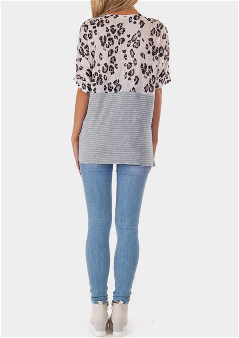 Greatest Fashion Blouse Women 2019 Casual Shirts Loose Leopard Printed Striped Blouse For Women Top V-Neck T